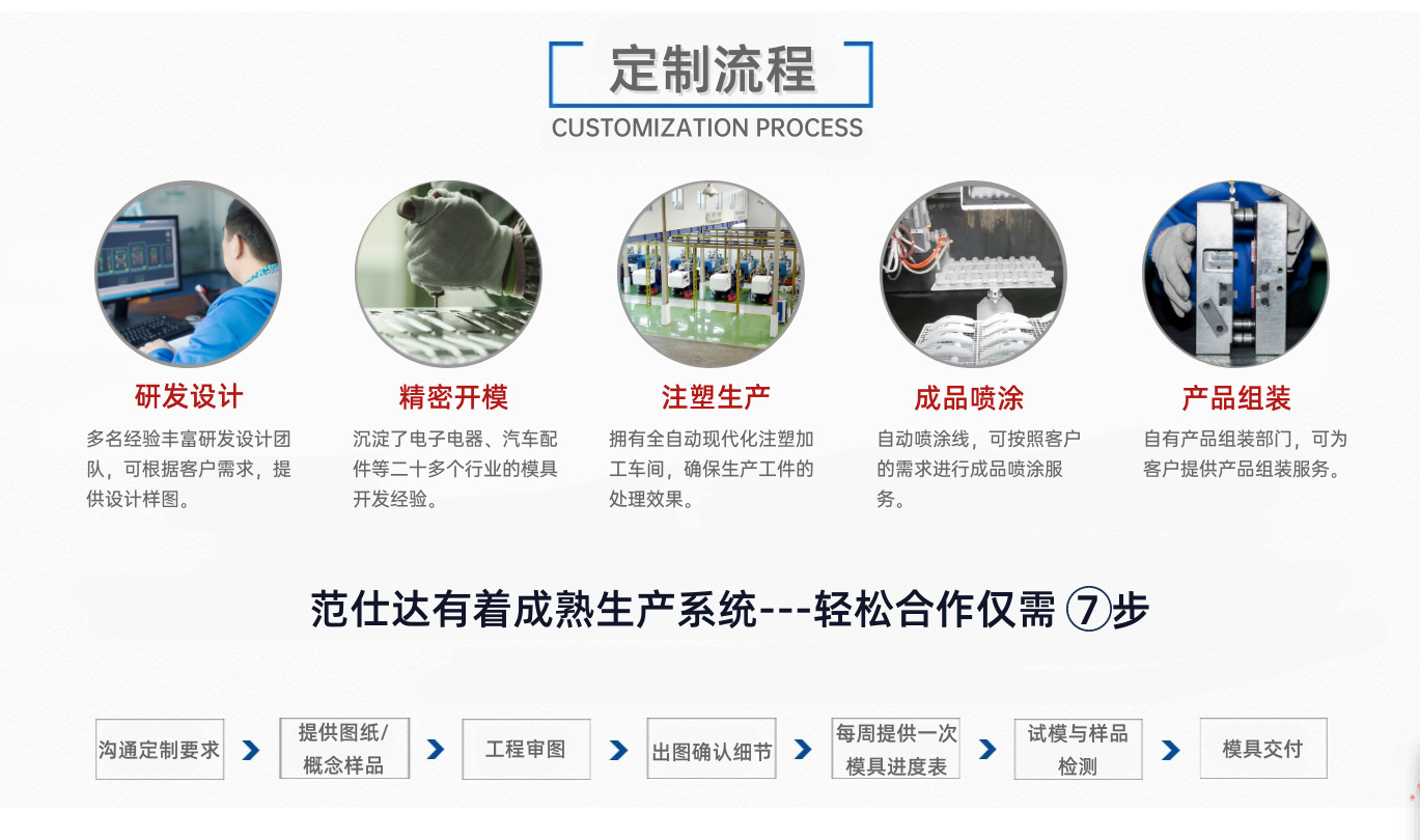 東莞范仕達(dá)掌握注塑生產(chǎn)核心技術(shù),從成品生產(chǎn)需求到客人模具制作前技術(shù)交流,讓模具交貨期短,壽命長(zhǎng),快速量產(chǎn),成品質(zhì)量?jī)?yōu)!自成立以來(lái)一直致力于精密注塑模具、多腔筆模、智能電子、機(jī)電產(chǎn)品、汽車連接器、醫(yī)療管狀模具及其非標(biāo)配件加工技術(shù)!