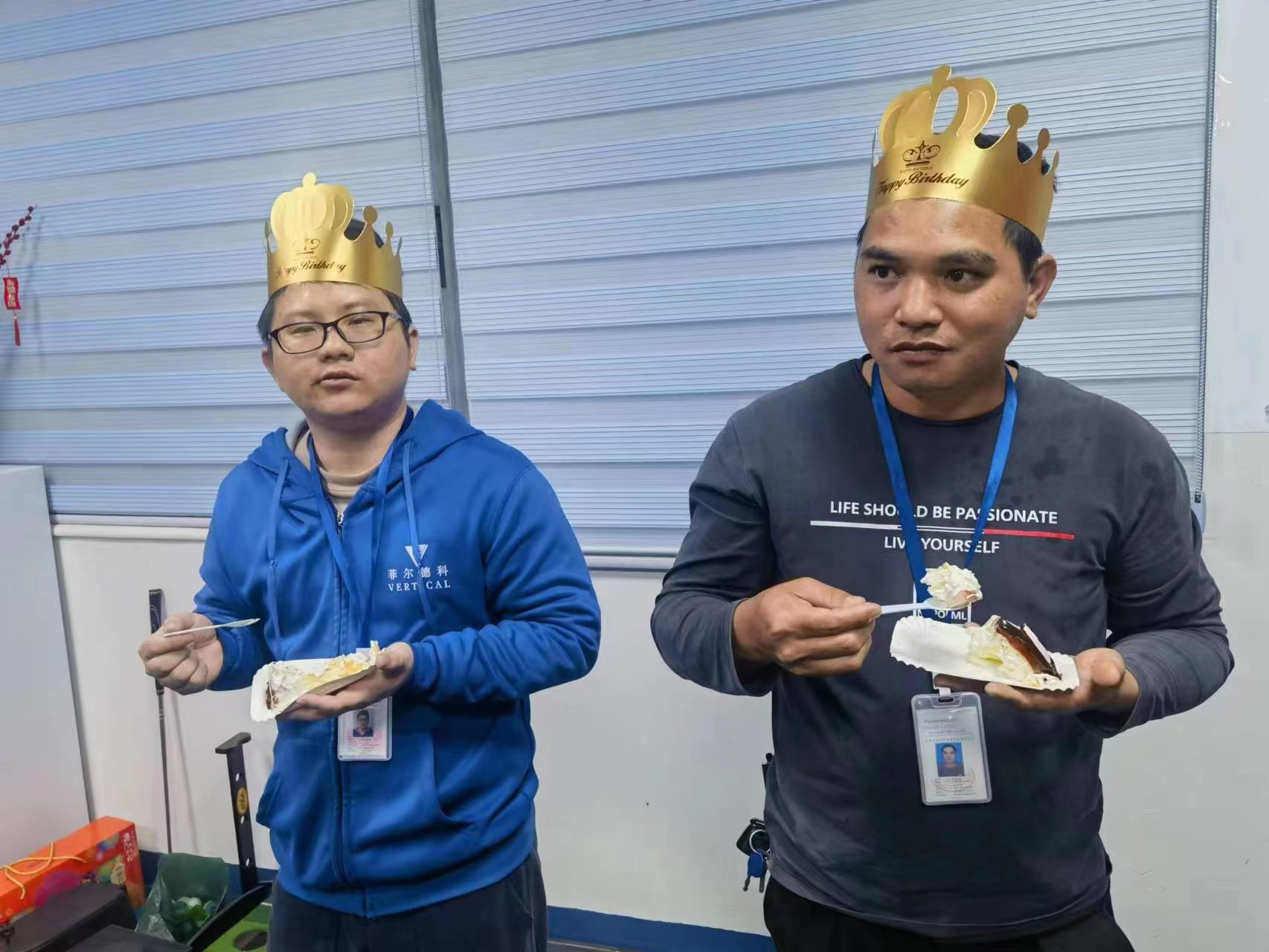 此次生日會在歡快熱烈的音樂聲中開啟,全體員工和壽星們聚齊在一起唱生日歌,許下生日愿望、一起切蛋糕,有心的員工還給壽星們送上了手寫的生日祝福。